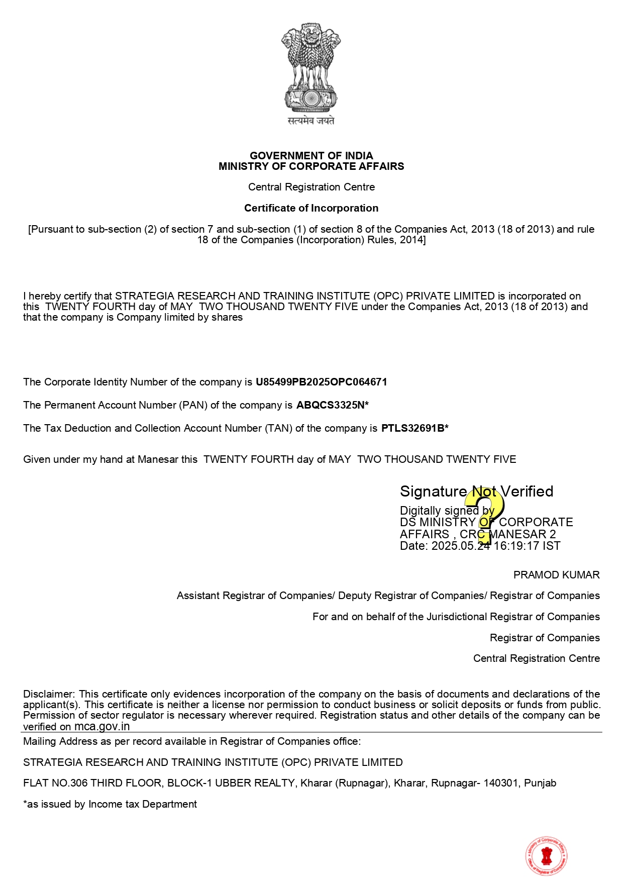 Certificate of Incorporation