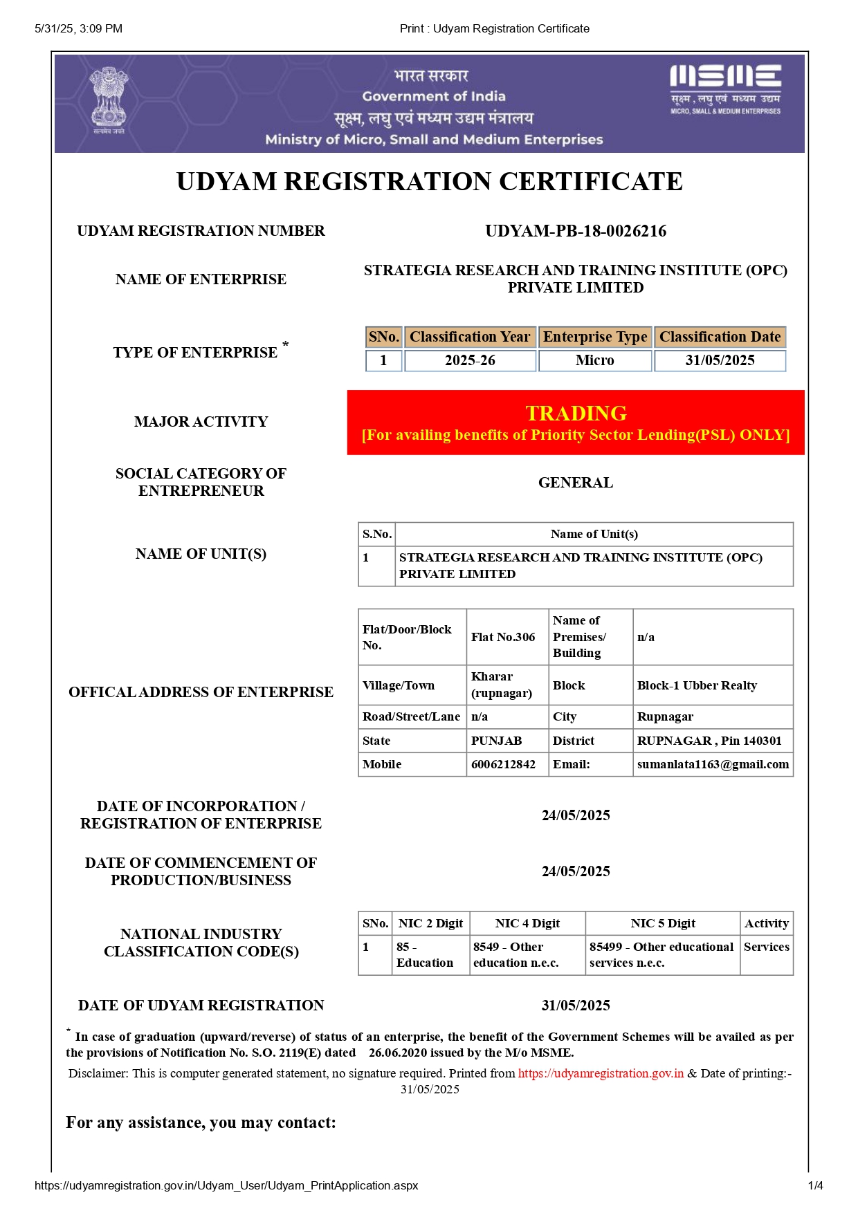 Udyam Certificate